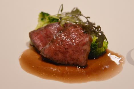 能登牛と海の旨味のポテト バター風味のブリッコリ フランス料理的な赤ワインソース