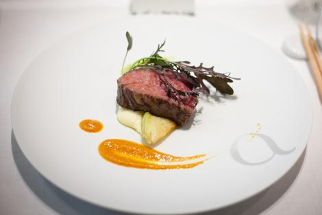 大和牛と季節野菜のグリル アコルドゥ風 燻した「ウガリ」と「ムチュジ」